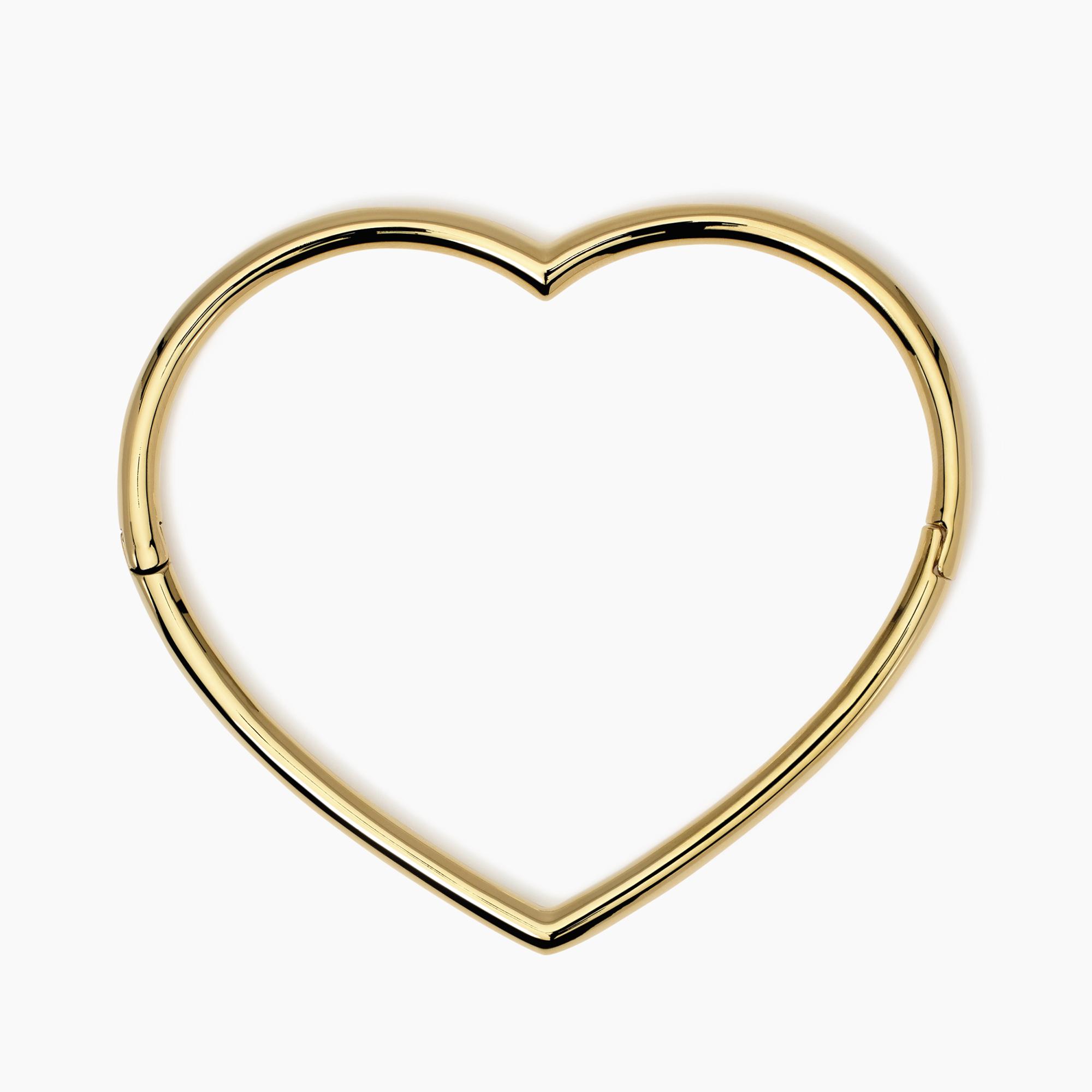Bracciale rigido a forma di cuore in acciaio dorato.